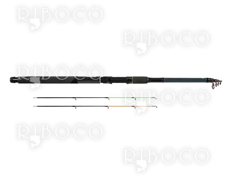 В комплекта са включени два фидер върха от фибростъкло с различен строй – Medium (зелен) и Heavy (оранжев), което позволява лесна адаптация според условията на риболов и активността на рибата.