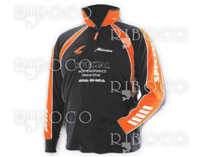 Моделът е двуцветен – комбинация от черно и оранжево с бели кантове и акценти, които придават динамичен и отличителен стил. Яката е снабдена с цип и позволява носене както свободно, така и плътно около врата при по-хладно време. Надписите S-Mission SPECIAL AWA-SHIMA отпред, на ръкавите и на яката подчертават спортния характер на блузата.