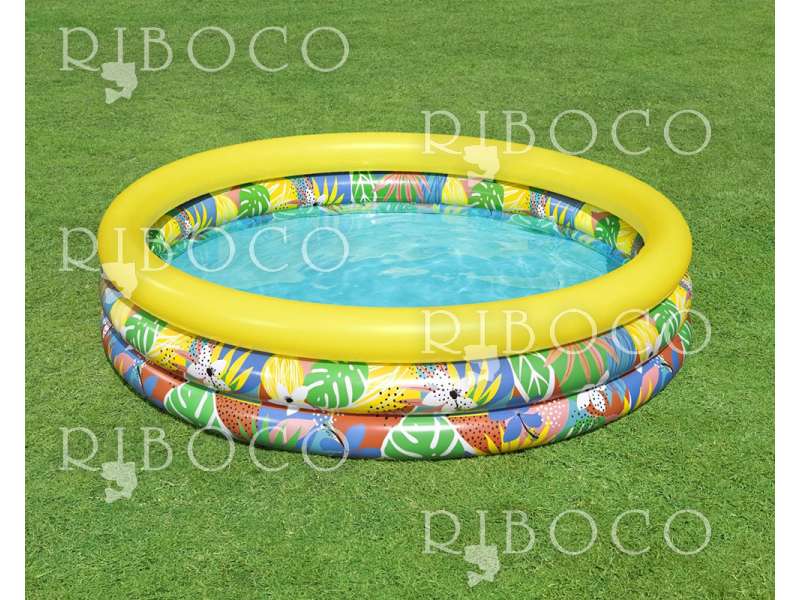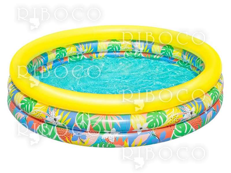 Bestway Floral Paradise е проектиран за деца над 2 години и разполага с три еднакви надуваеми ринга, които осигуряват стабилност и безопасност по време на игра. Ярките тропически мотиви придават настроение и правят всяко къпане още по-забавно.