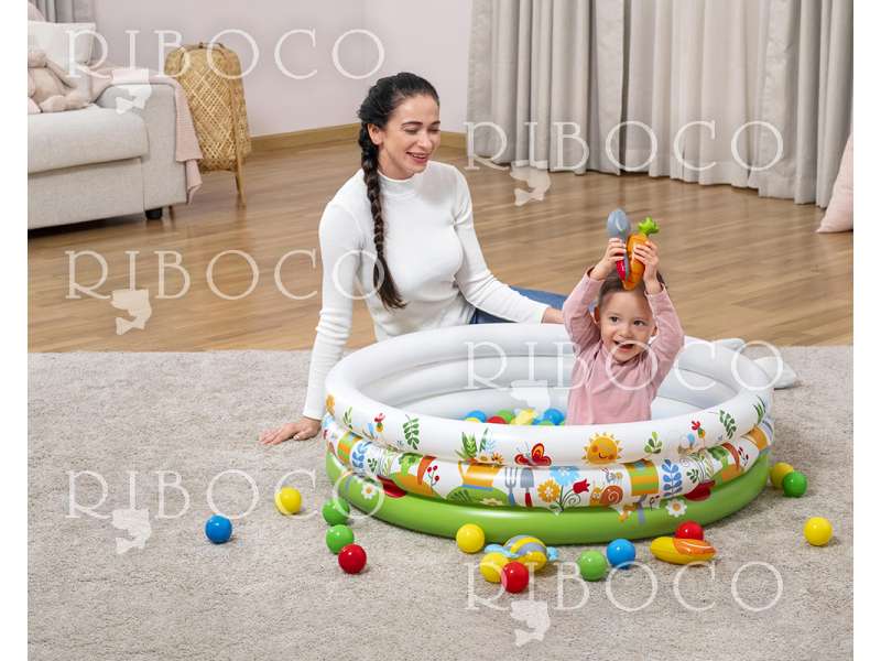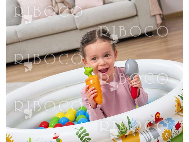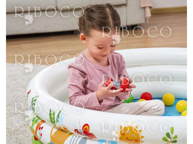 Басейнът може да се напълни с вода (до 101 литра) или да се използва като сух басейн с топки. Така детето ще се забавлява, докато развива фината моторика и координацията чрез игра.